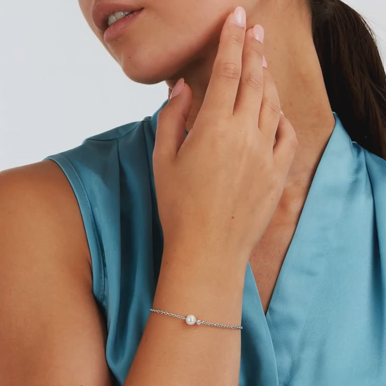 Bratara dama cu perle, placata cu argint, reglabila 16 + 5 cm, Lilou