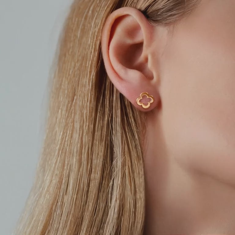 Cercei de damă cu trifoi, placați cu aur, Lilou