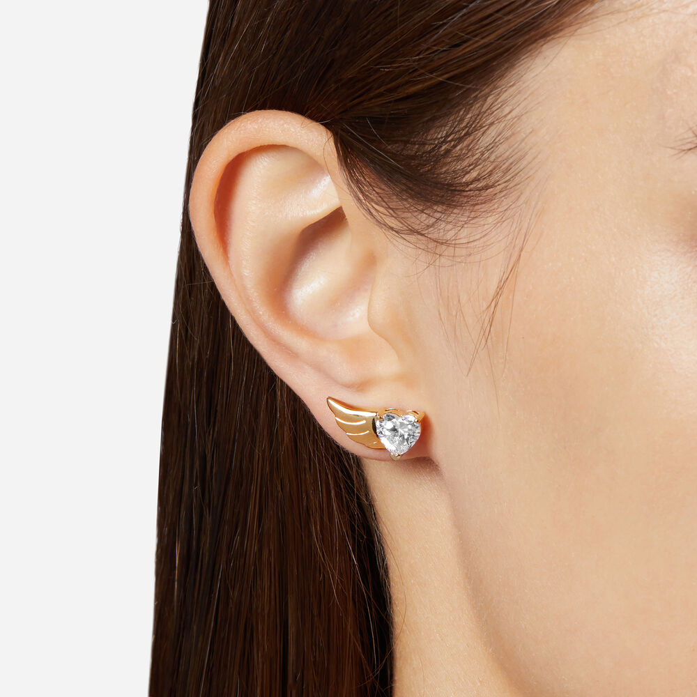 Add a romantic sparkle to your everyday look with the Chiara Ferragni "Cupido" stud earrings. Designed for women who love bold yet elegant details, these earrings feature a charming heart-inspired silhouette, crafted in yellow gold-tone brass and adorned with brilliant CZ stones for a radiant finish. Compact and stylish, with a size of 0.8 x 1.6 cm, they’re perfect for both casual wear and special occasions. A signature piece from the Cupido collection, blending playful design with timeless glamour.