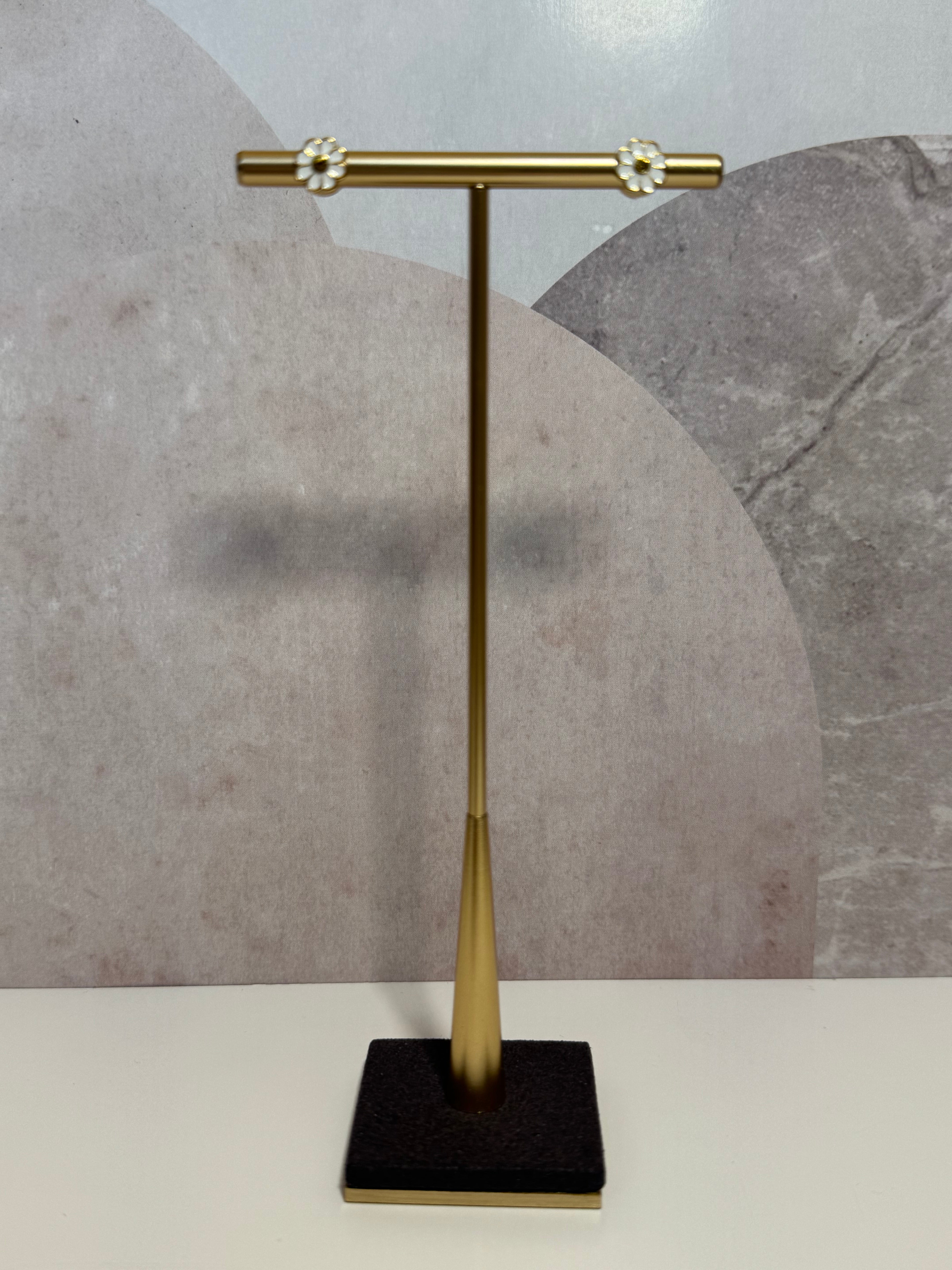 These golden daisy earrings are crafted from genuine 925 sterling silver, meticulously plated with 24K gold and sealed with an E‑coat finish for lasting durability and shine. Each earring weighs just 0.85 g of silver and features a charming daisy motif measuring 7.5 mm × 7.9 mm, with two sparkling crystal centers and delicately formed white epoxy petals. Secured with soft silicone butterfly backs for a comfortable, secure fit, they add a fresh, feminine touch to any ensemble.
