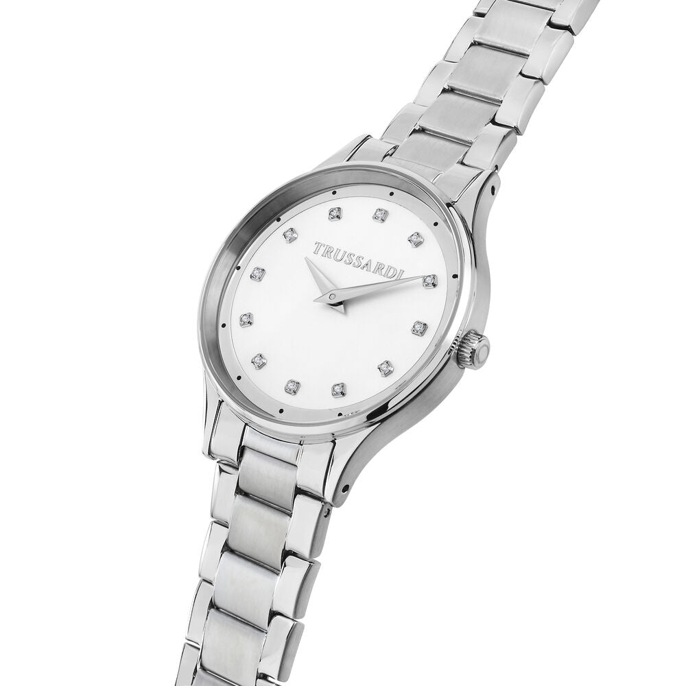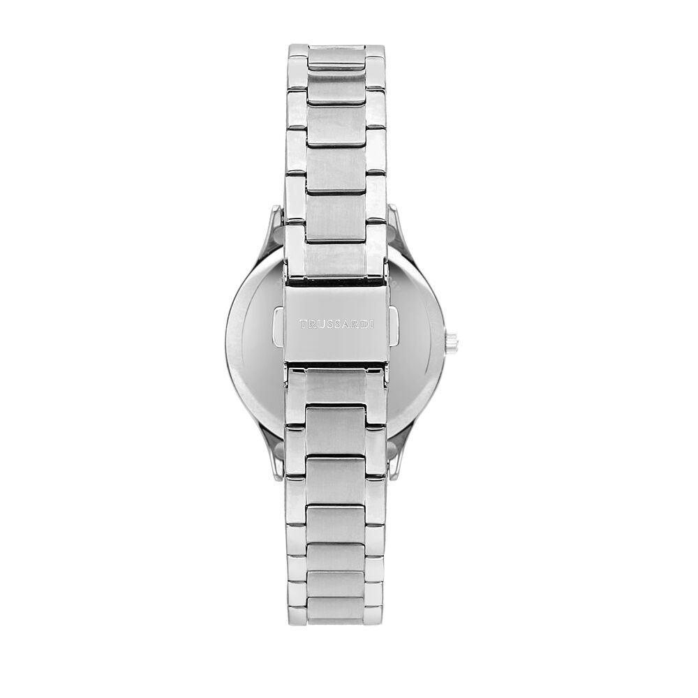 The Trussardi watch from the T-STAR collection, women's model, is a special piece that exudes elegance and refinement. Its brushed and polished stainless steel case is complemented by a white dial with a classic and sophisticated look. The mineral crystal offers protection against scratches, keeping the watch in pristine condition. The stainless steel metal bracelet complements the look of this watch, offering a subtle and refined contrast. The push buckle ensures a secure and easy-to-use fit. With a water resistance of up to 5 ATM, this watch is suitable for daily wear and various activities. Made of stainless steel, this Trussardi watch is an elegant and versatile accessory for any wardrobe. Case size: 34 mm