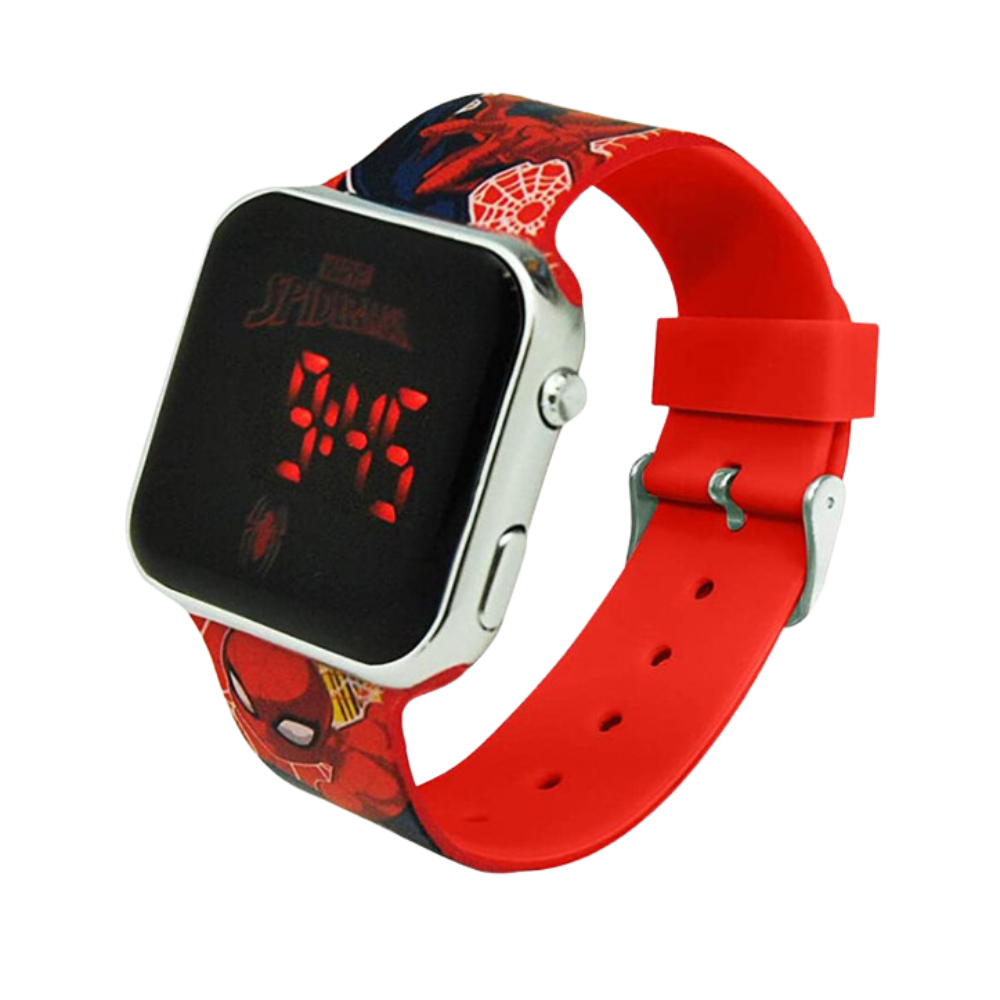 This LED Spider-Man watch is perfect for superhero fans! It displays the time with the press of a button. With a dynamic design and vibrant colors, it adds a touch of adventure and style to any outfit.