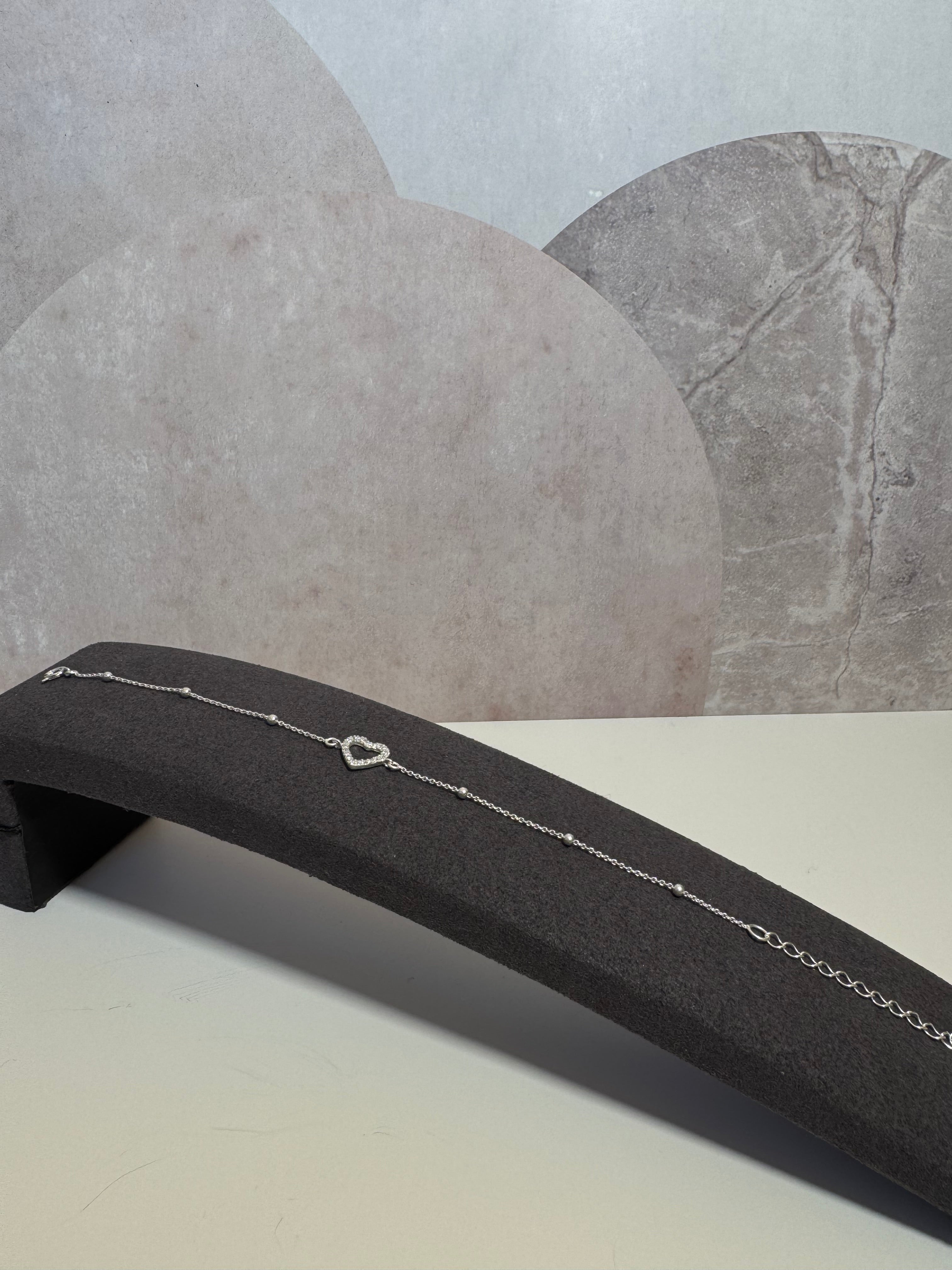 Elegantă și atemporală, această brățară lucrată manual este fabricată din argint 925, placată luxos cu argint 999 și cu un strat protector electrostatic. Împodobită cu 20 de pietre strălucitoare de zirconiu cubic într-o montură delicată cu știft, lucrată manual, pandantivul de 10x10 mm radiază rafinament. Lanțul reglabil de 20 cm (cu extensie de 4 cm) și designul ușor de 1,25 g oferă atât confort, cât și stil - perfectă pentru purtarea de zi cu zi sau pentru ocazii speciale.