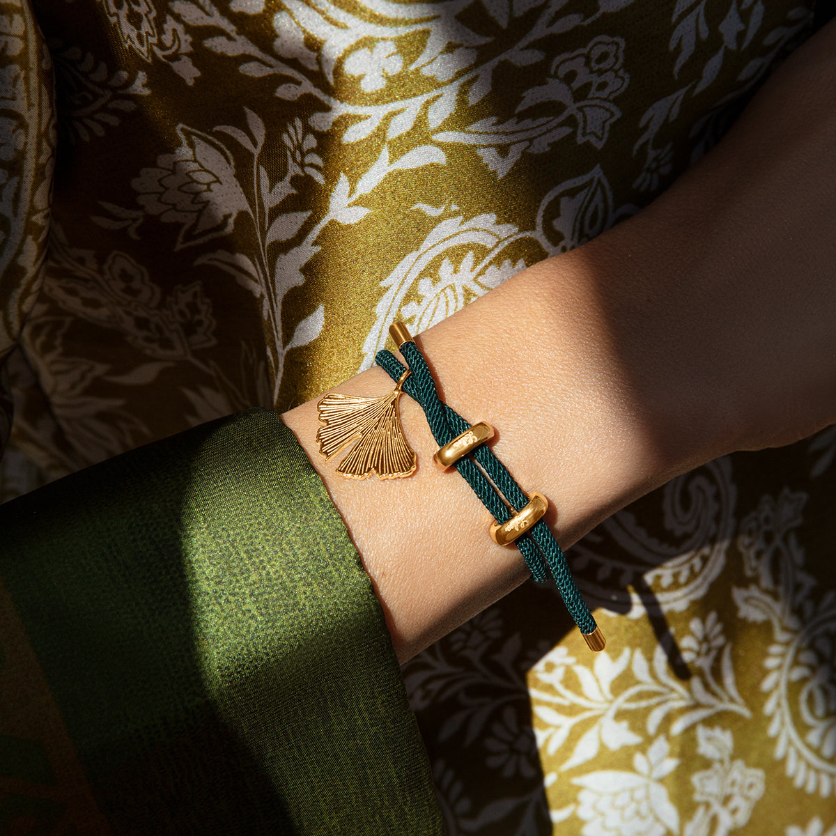 Bratara dama Liana cordon verde cu pandantiv Ginko, reglabila, Lilou