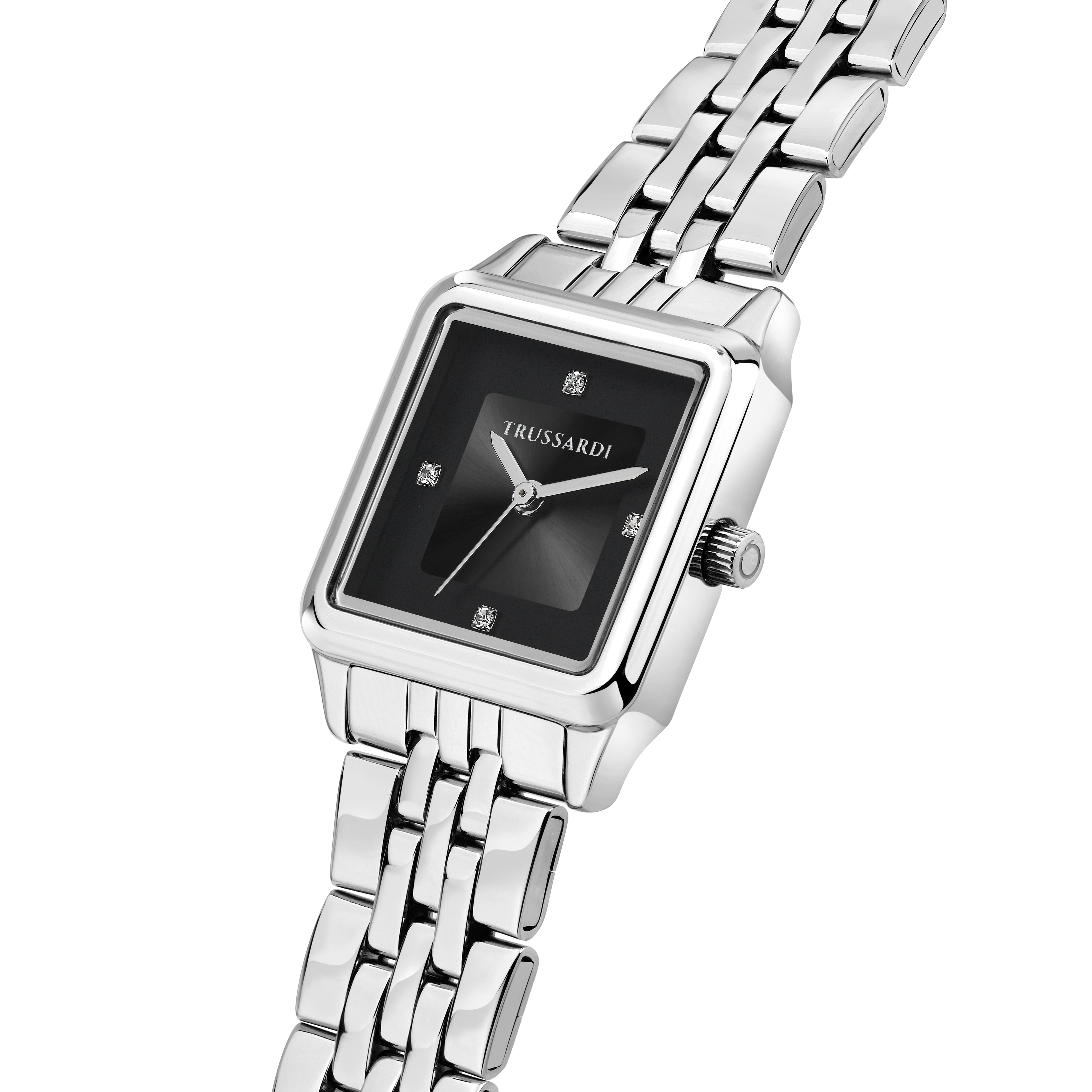 Ceasul de damă Trussardi T-Forma îmbină perfect eleganța cu stilul de zi cu zi. Carcasa din oțel lustruit, de 25x33 mm, protejează cadranul negru mat și oferă un aspect sofisticat și atemporal. Brățara din oțel inoxidabil, cu închidere deployment cu butoane, asigură siguranță și confort la purtare. Cu cristal mineral și rezistență la apă de până la 3 ATM, este un ceas versatil, ideal atât pentru ținute casual, cât și elegante.