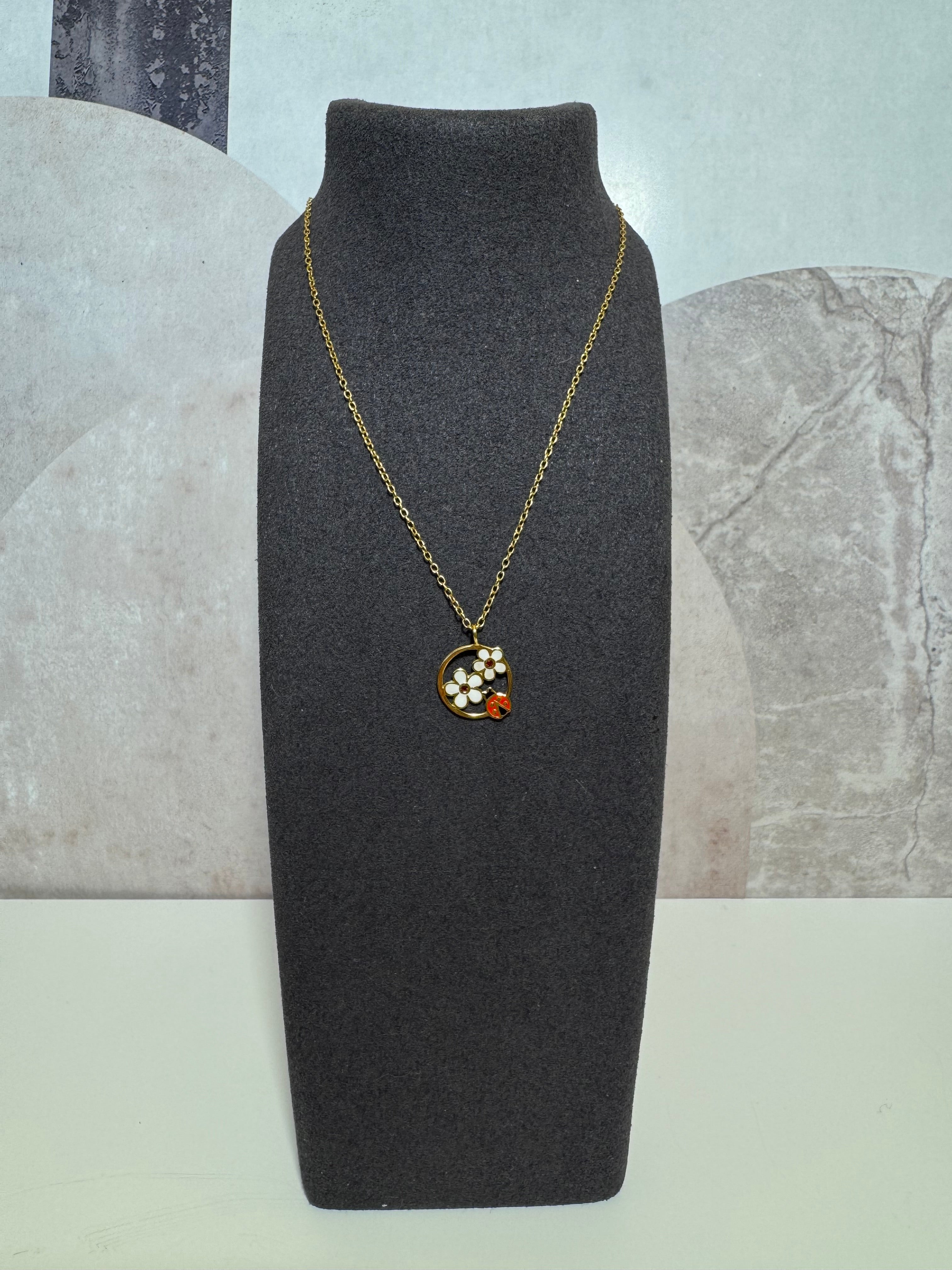 Colier de damă din argint placat cu aur, cu buburuză și flori, Tessora