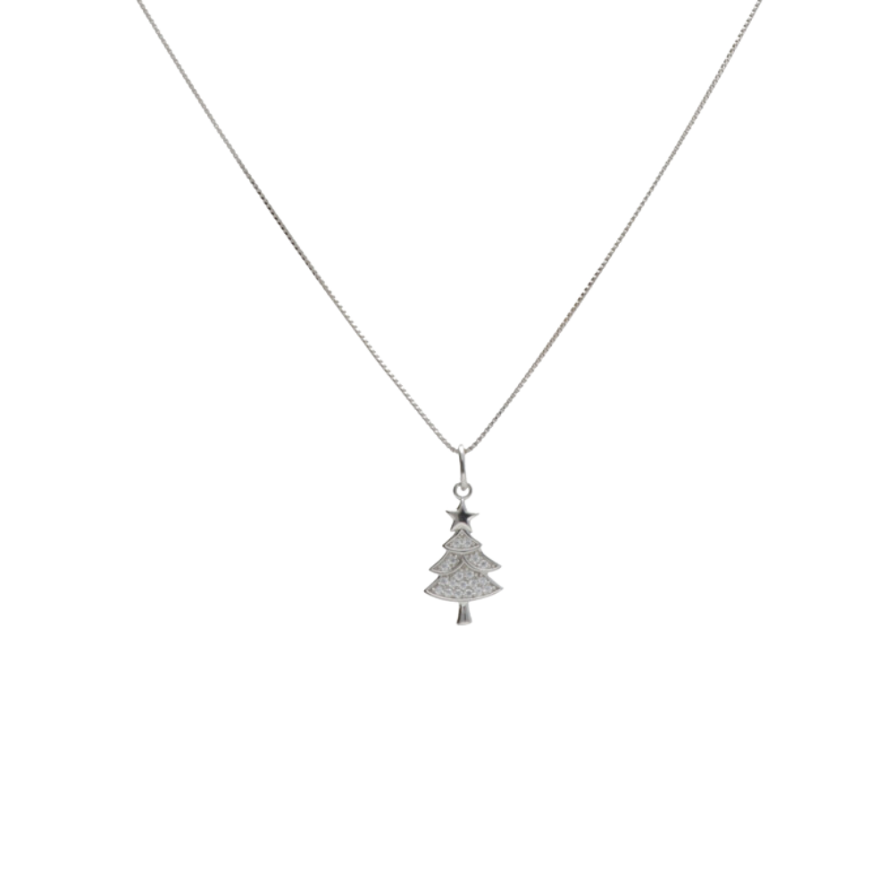 Colier cu pandantiv in forma de brad, din argint 925, placat cu rodiu.