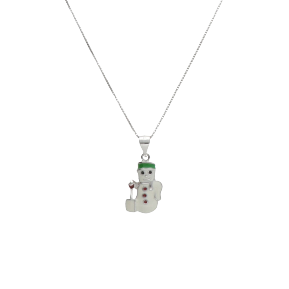Colier cu pandantiv in forma de om de zapada, din argint 925, placat cu rodiu.